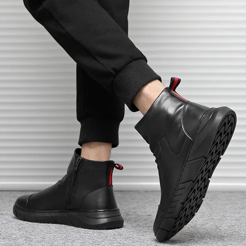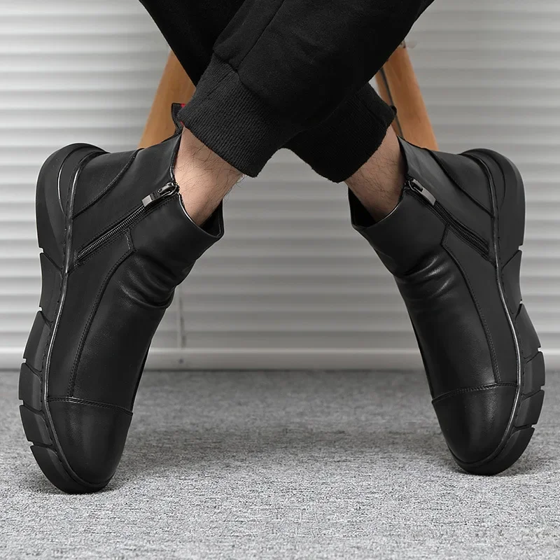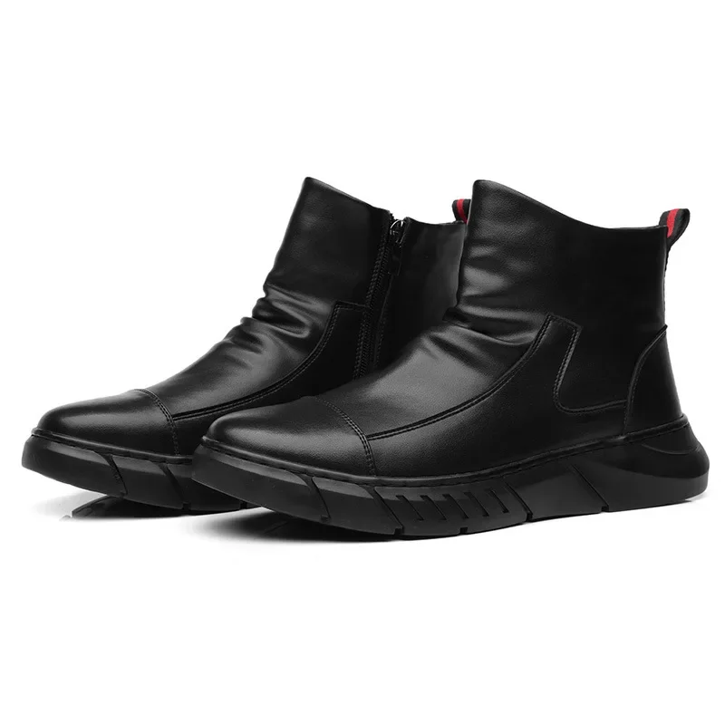 • Chelsea Boots Slip-on Waterproof Ankle Boots Retro Black Men Fashion Boots Motorcycle Shoes Plus Size