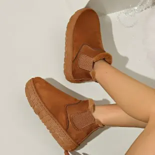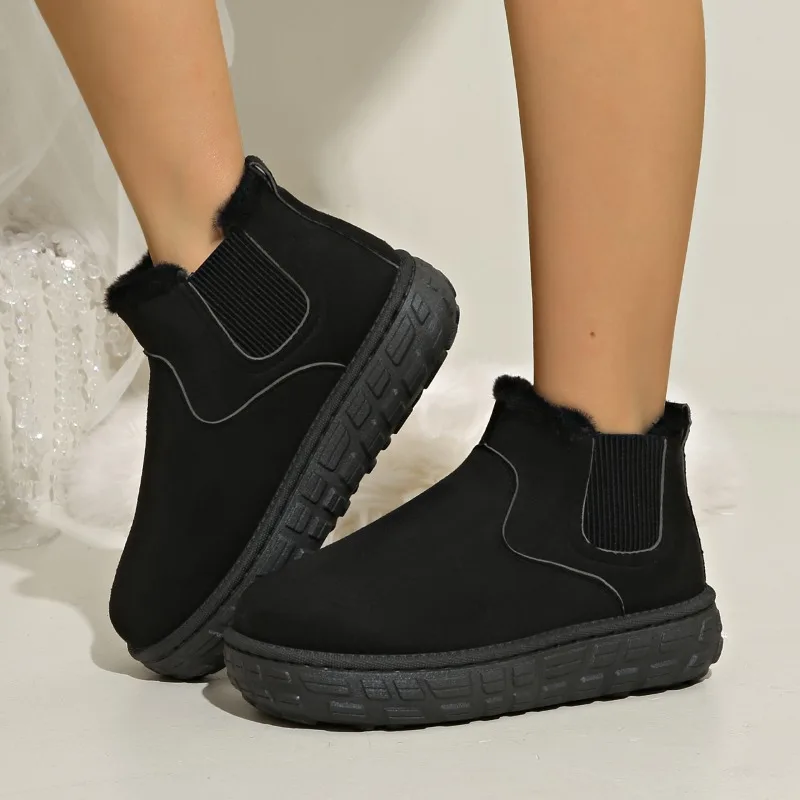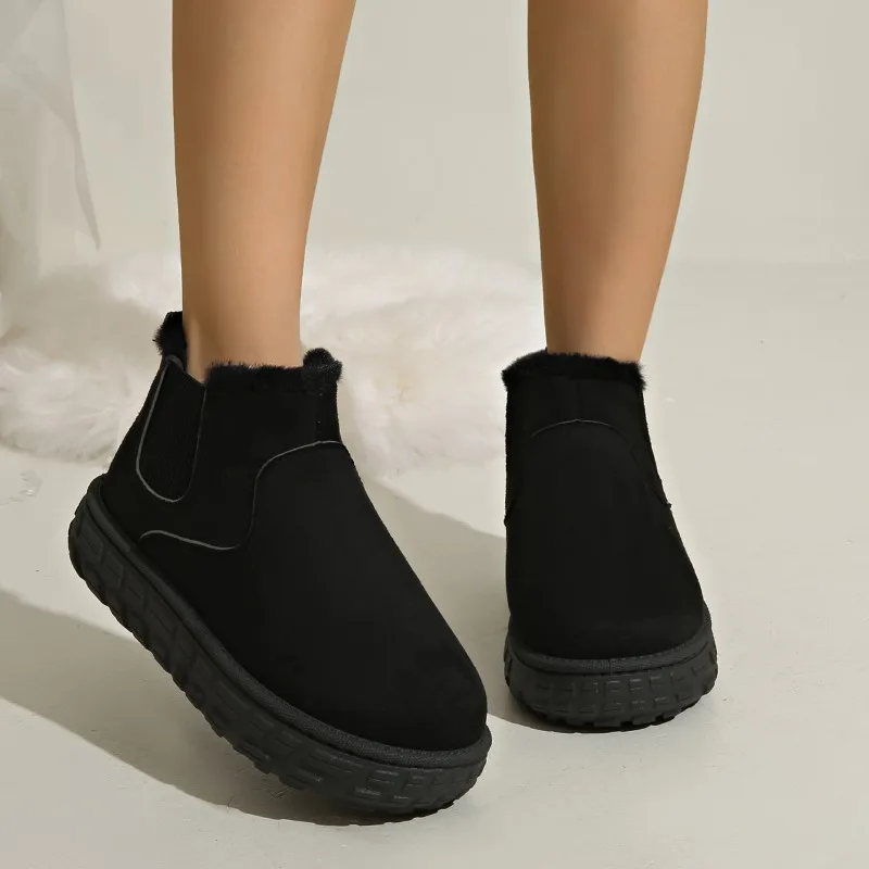 • 2025 Women’s Round Toe Designer Thick Bottom Non-slip Short Boots Female Outdoor Plush Warm Ankle Boots