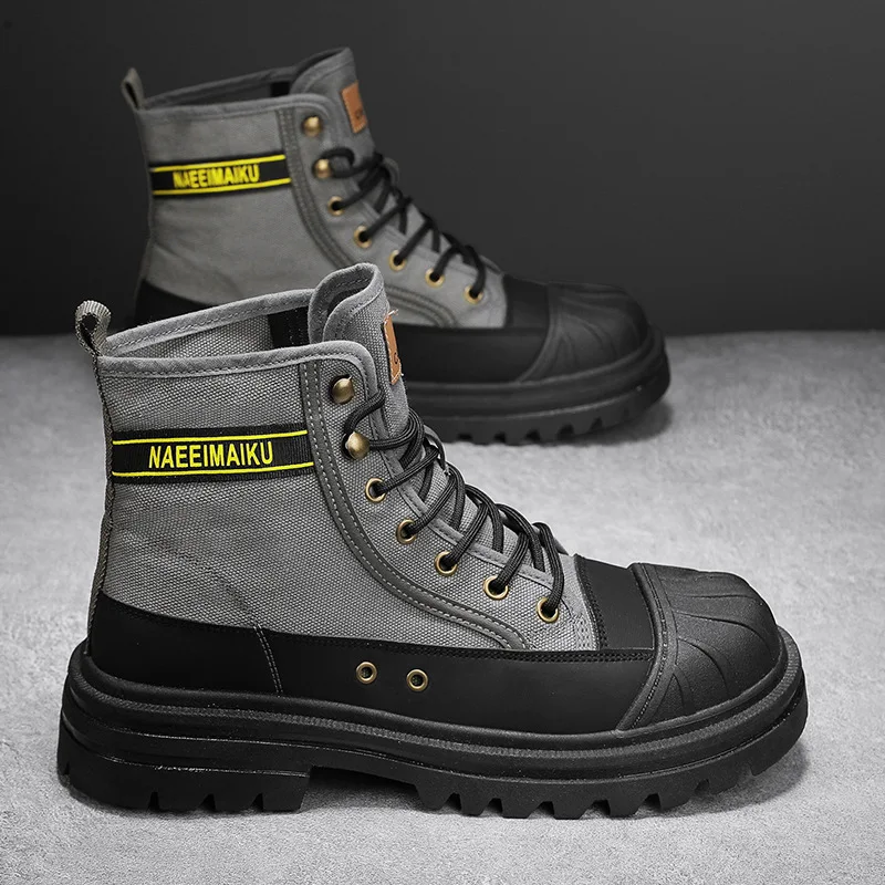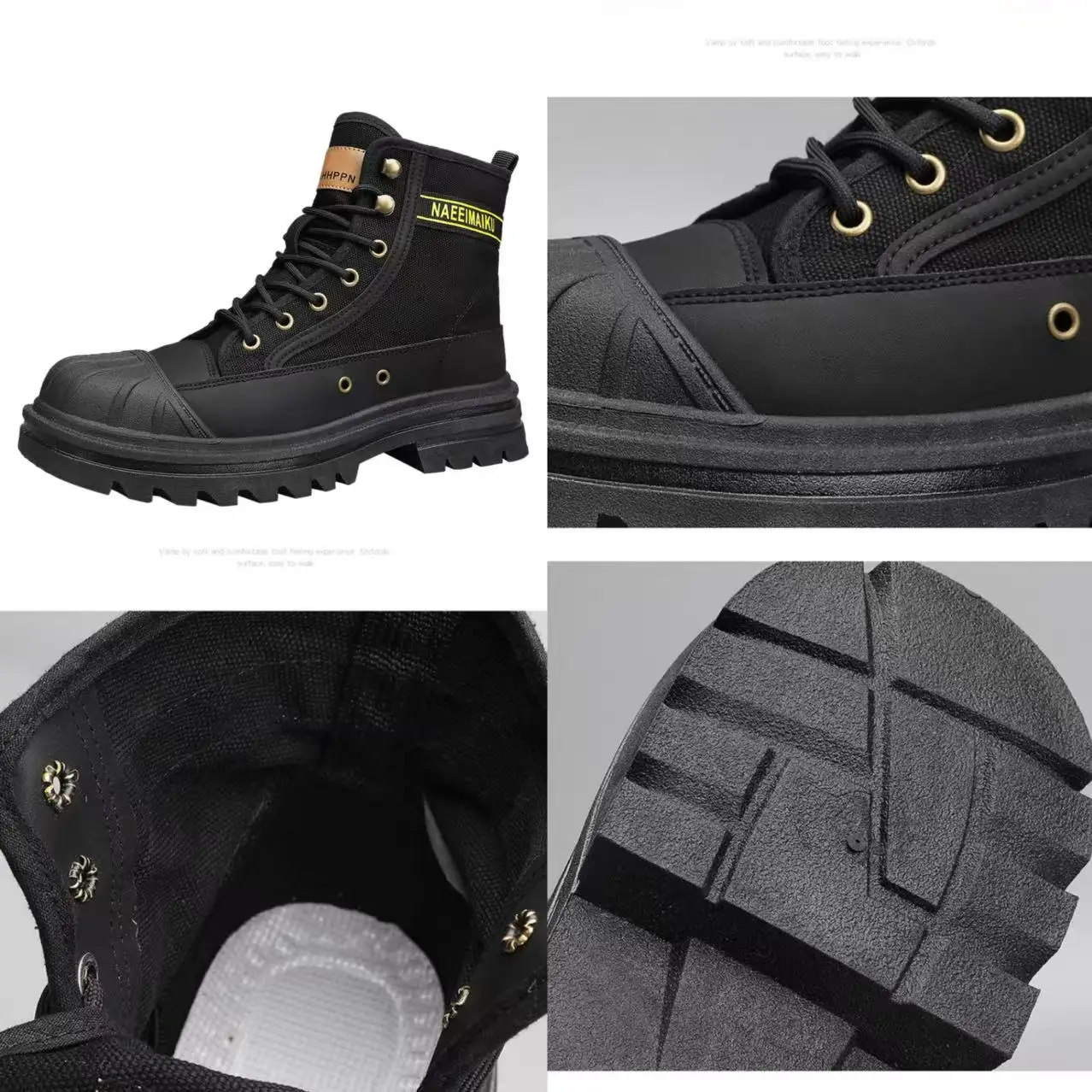 Men Ankle Boots High Quality Outdoor Work Boots for Men Fashion Platform Motorcycle Boots Lace-Up High-top Canvas Men Shoes New