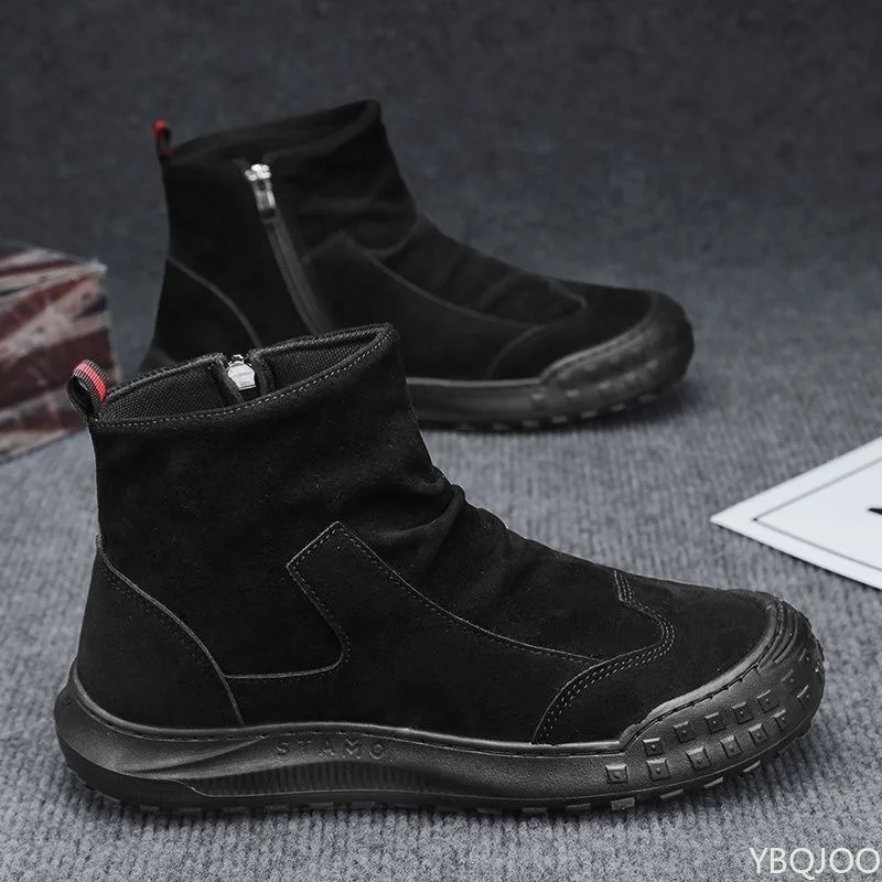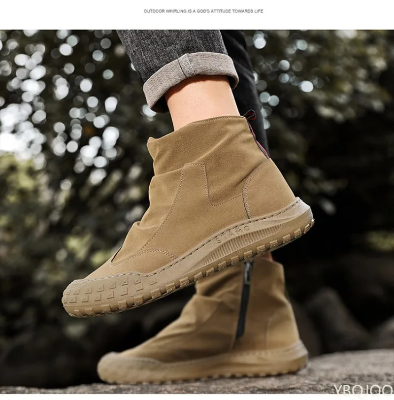 • Luxury breathable Men Ankle Boots High Top Fashionable versatile Men shoes Zipper Retro minimalist Men’s Boots